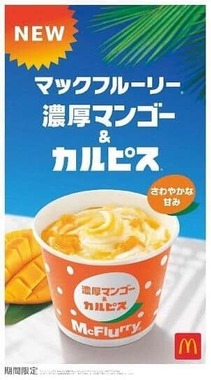 日本マクドナルドは、「マックフルーリー 濃厚マンゴー&カルピス」を2022年7月6日に発売。