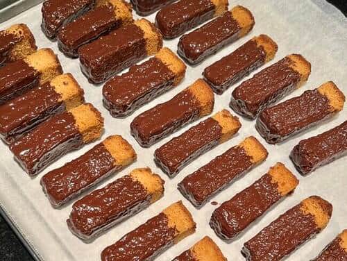本来、カステラの耳部分は香ばしく濃厚な味わいが楽しめるが、焼き上がりによって形や色にムラが生じやすいためにカットされてしまう。それをatiromのパティシエチームが焼き上げ、京都のチョコレート専門店「Dari K」のチョコレートでコーティングして仕上げた。