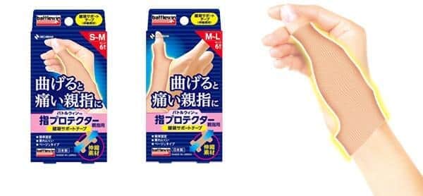 20年9月に発売された「指プロテクター」の第2弾となる。曲げると痛い親指に貼ることで親指~手首を守れる、親指専用のテーピングテープだ。