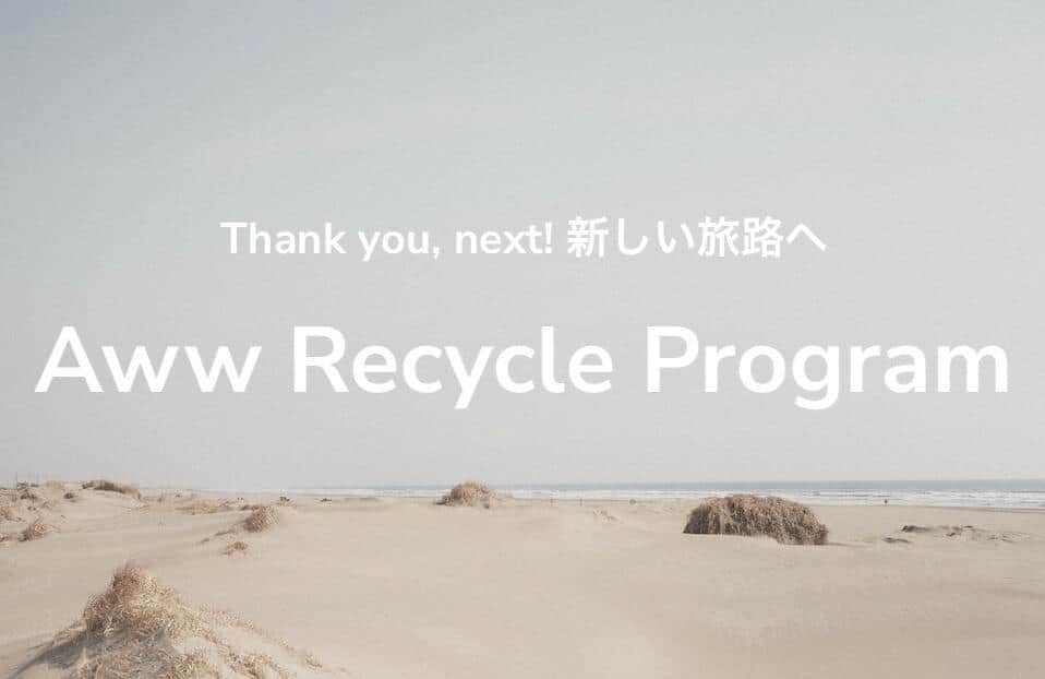 Awwのスーツケース購入者を対象に、スーツケースのブランドや形状、故障品などを問わずに送料無料で回収する。回収したスーツケースは、再利用できるものはリユース、故障しているものはパーツのリユースや素材のリサイクルを行う。
