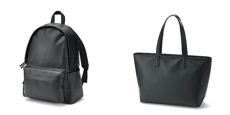 「植物由来の原料を使った」シリーズは、ポリウレタン樹脂の代わりにトウモロコシの胚芽(はいが)から採れるオイルを使用した合成皮革を使用している。
