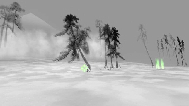 「国宝に親しむ」で再現した「松林図屏風」は、白色をベースとした3D空間に、淡い色合いをした松の木々が出現する。そのうち4本の木は、絵で描かれている本来の位置と比べて、ずれた場所に配置されているという。ユーザーがCluster内で対象の木に触れると、前後左右に動かせる。