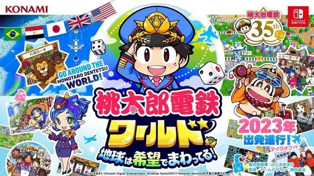 ゲーム「桃太郎電鉄」シリーズ最新作、「桃太郎電鉄ワールド~地球は希望でまわってる!~(以下、桃鉄ワールド)」が、2023年中に発売される。メーカーのコナミデジタルエンタテインメントが、2月9日に発表した。対応機種は「ニンテンドースイッチ」だ。