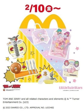 日本マクドナルドは、ハッピーセット「トムとジェリー」「リトルツインスターズ」を2023年2月10日に発売した。