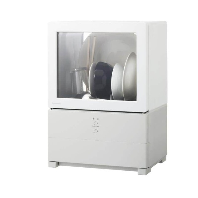 物量感を視覚的に和らげる、前・背面に大きなクリア窓を備えたデザインを採用。高温高圧の水流で手洗いよりキレイに洗い上げられるほか、「ストリーム除菌洗浄」機能により洗うと同時に除菌も行う。洗浄後は送風で食器をカラッと乾燥し、そのまま保管して食器棚のようにも使える。