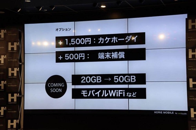 「HORIE MOBILE」では月あたり20GB(ギガバイト)までデータ通信が可能で、5分間まで通話料がかからない電話かけ放題サービスを提供する。月額基本料金は3030円(税込)だ。通信回線はNTTドコモのネットワークを利用しており、大手キャリアと同じ通信環境を使用可能とのことだ。