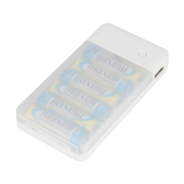 外出先などでバッテリーが切れても電池を交換すれば何度でも使える。アルカリ乾電池のほかニッケル水素充電池にも対応する。過電流・短絡の両保護機能を備える。