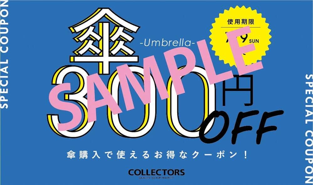 キャンペーンの特典として、回収品1点につき傘購入時に使える300円オフとなるクーポンがもらえる。