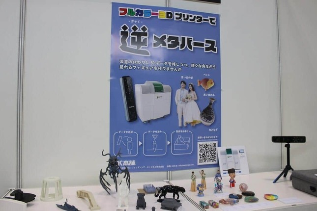 「逆メタバース」という聞きなじみのないフレーズを掲げるのは、3Dプリンターを販売している「SK本舗」(東京都渋谷区)だ。現実の家具などを3Dモデル化するのでなく、むしろユーザーが普段メタバース上で愛用している3Dモデルやアバターをフルカラーで3Dプリント。フィギュアとして、現実で飾るサービスを提案しているとのことだ。