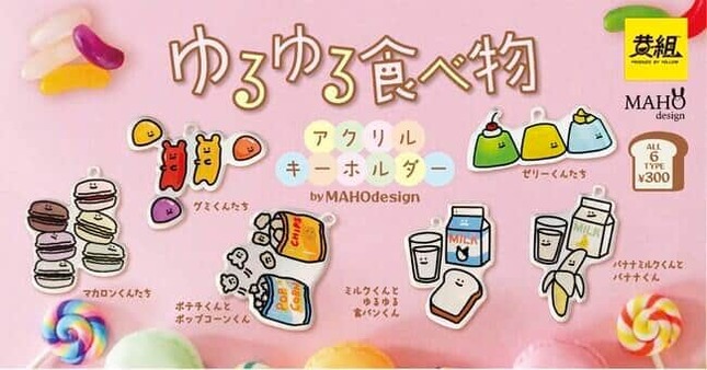 広報によると、新商品のリサーチをしていたところ、MAHOさんのかわいらしい画風が偶然目に入ったという。カプセルトイ業界では、スイーツや菓子を題材にした商品が流行しているため、今回オファーを出したとの話だ。