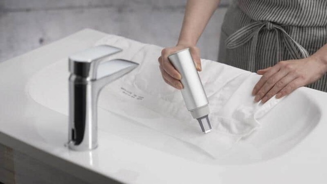 毎秒約3万8000回の超音波振動が水を含んだ繊維の隙間に真空の泡を発生させ、泡が弾ける際に生じる強力なパワーで汚れを弾き飛ばす。ワイシャツの襟汚れなら約45秒で素早くキレイに落とせるという。