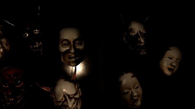 箱の中身は日本人形。開けた瞬間、「呪い」が降りかかる。視界にノイズが走り、血の色の手形が無数に出現し、うめき声が響く。あわてて引き返すと、先ほどの能面が飛んできたのか、びっしりと棚に貼り付いている。