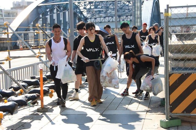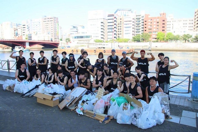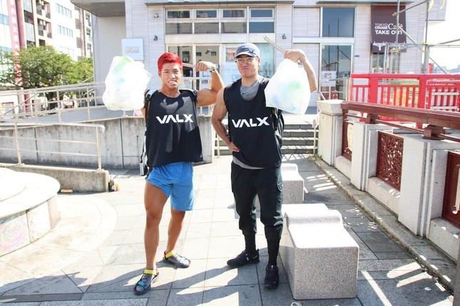 VALXを展開するレバレッジ社(東京都渋谷区)のYouTubeチャンネルでアシスタントを務めている「タケタコタン」さんがあいさつする。今回のごみ拾いイベントは4回目で、過去には渋谷や代々木公園で実施している。「すごく暑いので、とにかく熱中症にならないよう水分補給をお願いします」と注意喚起し、ゴミ拾い開始だ。隅田川の東側沿いを南に、マッチョ軍団が突き進む。