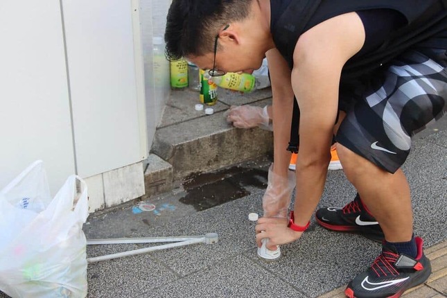 トングで吸い殻や紙くずを次々に拾い上げ、有り余る力でペットボトルを潰し、回収。マッチョたちが通り過ぎた後は、路面清掃車が通ったかのようにごみが消えている。
