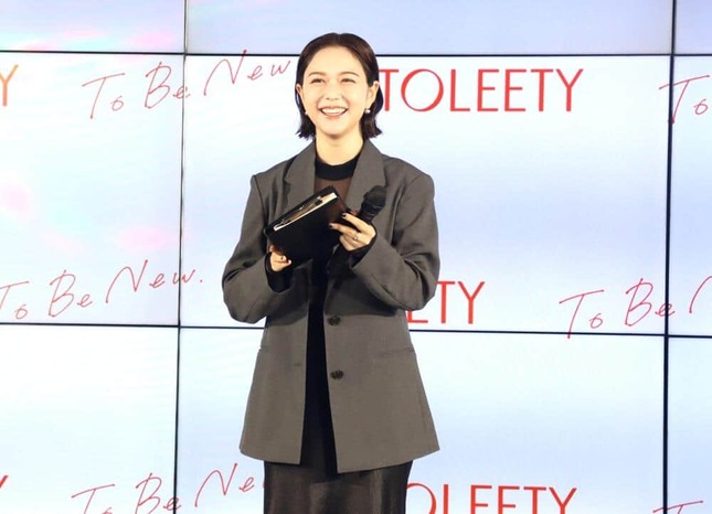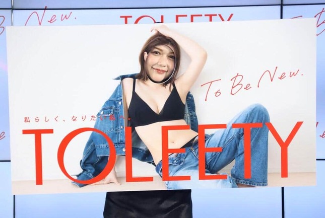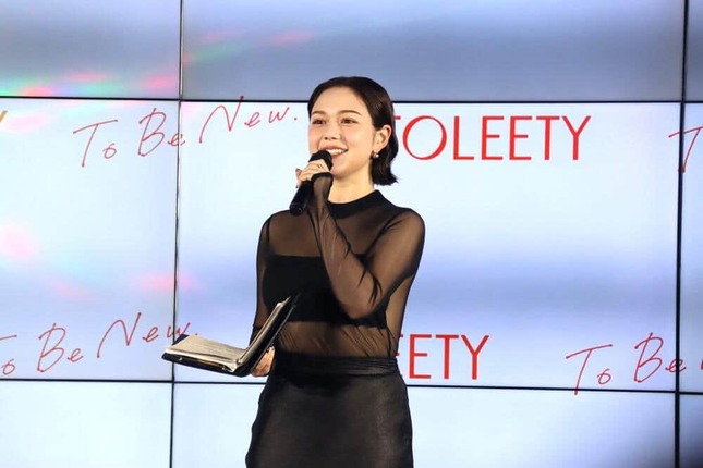 村重さん自身がMCとなってイベントを進行。開始早々「汗びっちょりです。緊張します」とこぼしつつも、元気に新ブランド「TOLEETY」の新商品を紹介した。