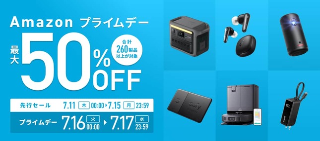 スマートフォン向け周辺機器などを扱うアンカー・ジャパン(本社・東京)は、ベストセラー製品から最新の製品まで全260製品以上を最大50%オフで販売している。