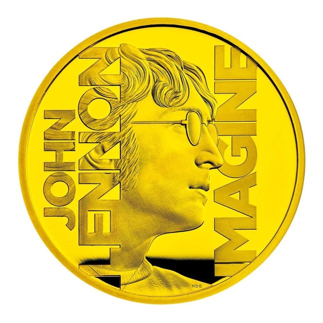 「伝説のミュージシャン コインシリーズ ~ジョン・レノン~」は、中央にジョンさんの横顔を印象的なタッチで描写し、左側に英語で「JOHN LENNON」の文字、右側には代表曲「IMAGINE」のタイトルを刻印する。