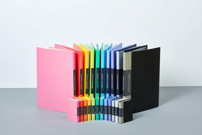 「ミニカラーベース」は、ロングセラーの「クリアーファイル カラーベース」がモチーフ。ポケットには表紙と同系色の台紙が入り、外側に加え中身も"推し色"にできる仕様だ。