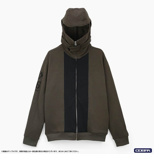 フードは同MSの頭部を模した立体的な設計で、前身頃は上半身をイメージした切り替えデザインを採用。右袖にはジオン公国軍のエンブレムと型式番号をプリントで施す。