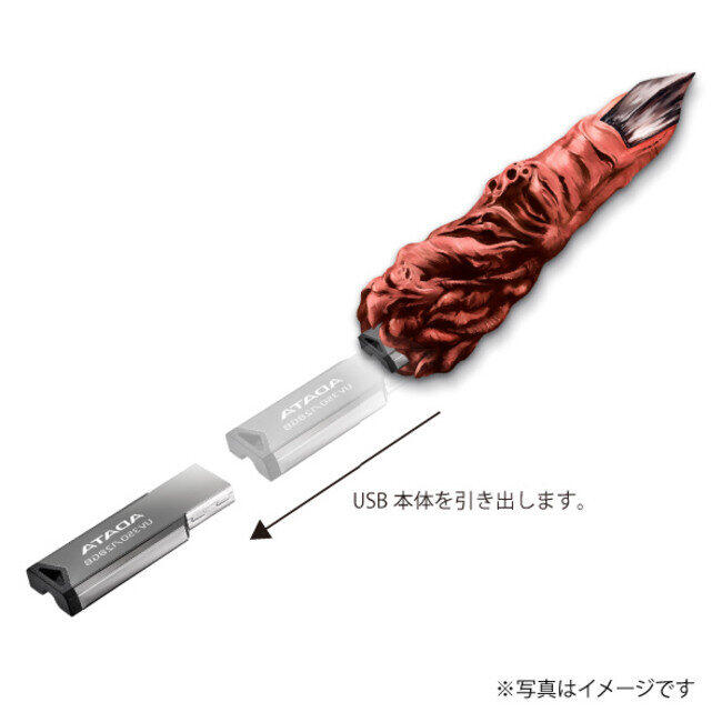 作品中に登場する"両面宿儺(すくな)の指"をリアルに再現した「USBメモリ」(4980円)は、光沢のある表面仕上げでスタイリッシュ。メモリを取り外して使えるので便利だ。また、USB3.2による高速転送も可能になっている。