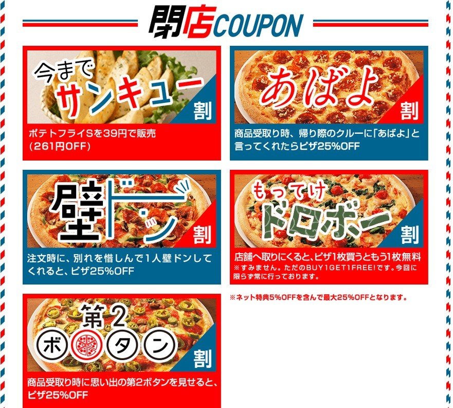 「ドミノオンライン」閉開店セール実施! 注文時に別れ惜しんで「壁ドン」すれば25%オフ...など