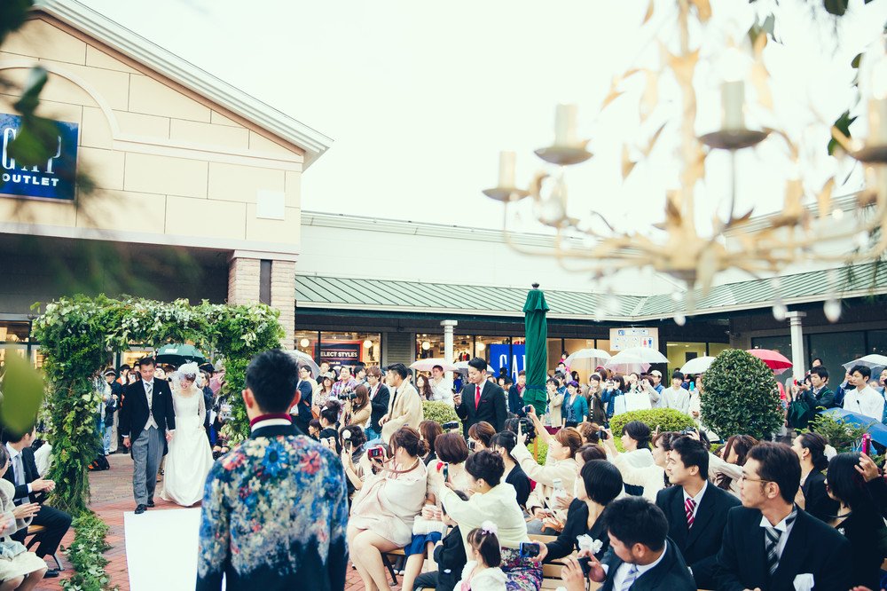 御殿場プレミアム・アウトレットで結婚式 来場客含め施設全体が2人を祝福