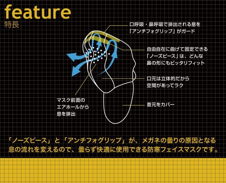 鼻から首までしっかり防寒!なのにメガネが曇らない 「超3Dネオプレーン フェイスマスク」発売