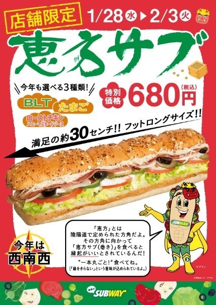 【超速報】節分恒例!サブウェイ「恵方サブ」が今年も始まったぞ~ 超デカいサンドイッチにカブりつこう!