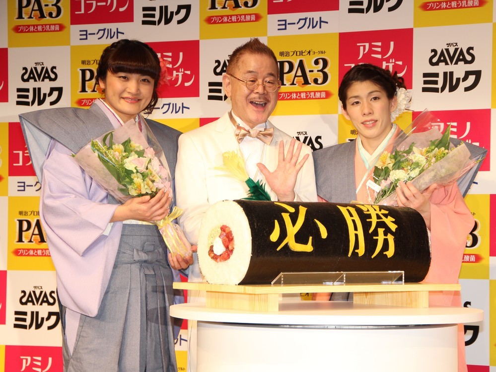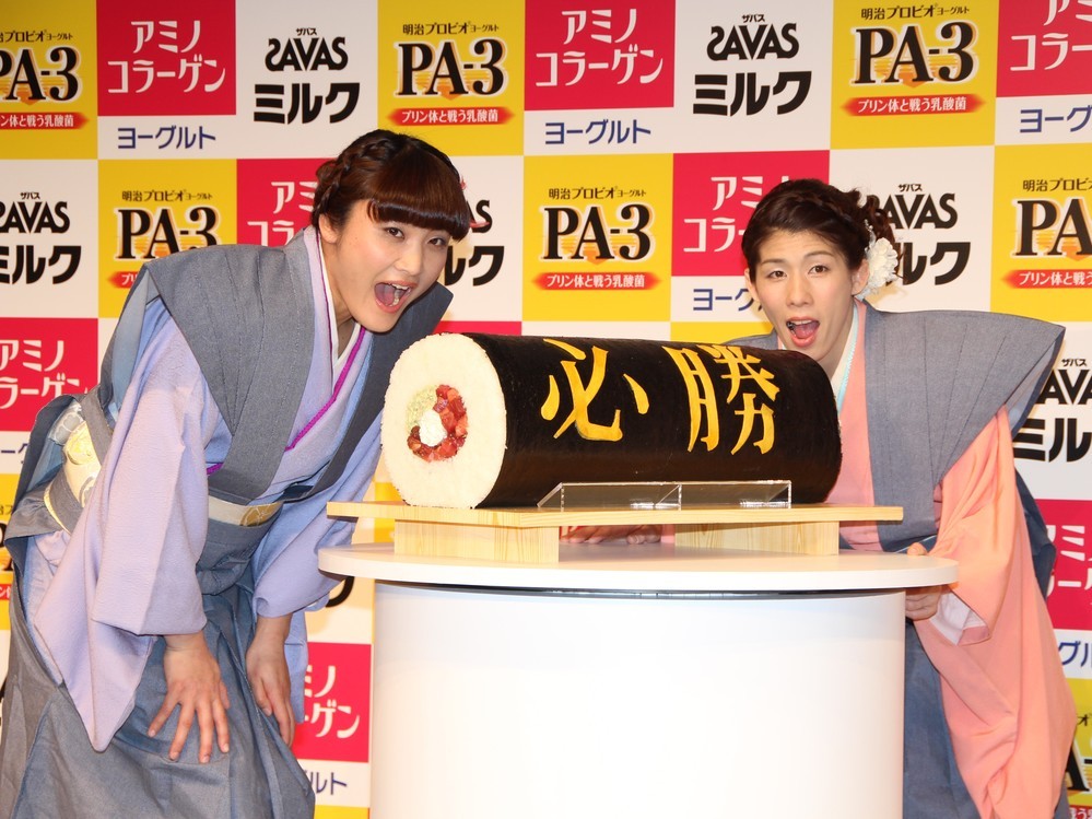 吉田沙保里選手が巨大「ヨーグルト恵方巻き」をガブり 「こんな大きいのは見たことない」