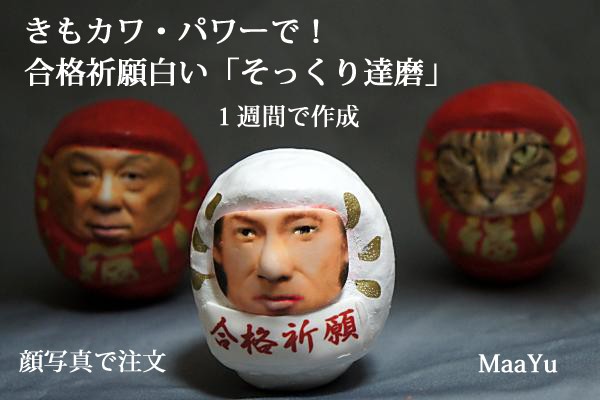 リアルな顔、シュールな存在感 「そっくり達磨」の合格祈願白バージョン登場3Dプリンターで作成