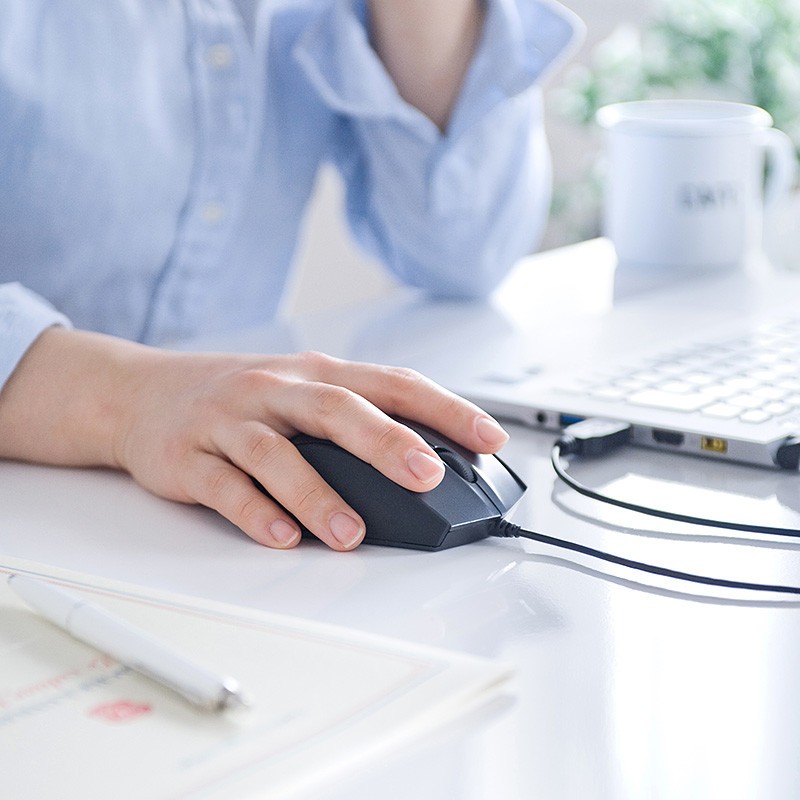 クリック音控えめ、操作しやすく疲れにくいエルゴノミクス形状のマウス
