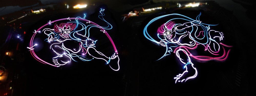 異彩放つ新型マークX 走りの軌跡で風神・雷神を描く