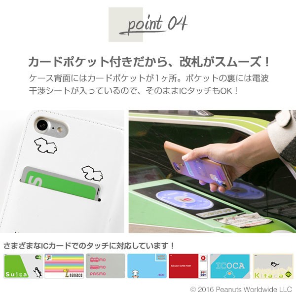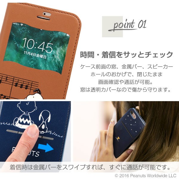「スヌーピー」のフリップ開かずiPhone7が使える PEANUTS窓付きケース
