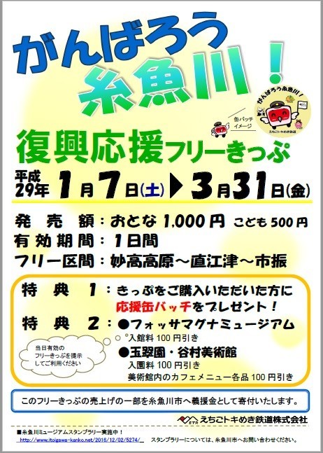 【大人1000円】糸魚川市を走る「えちごトキめき鉄道」、復興応援フリーきっぷを発売