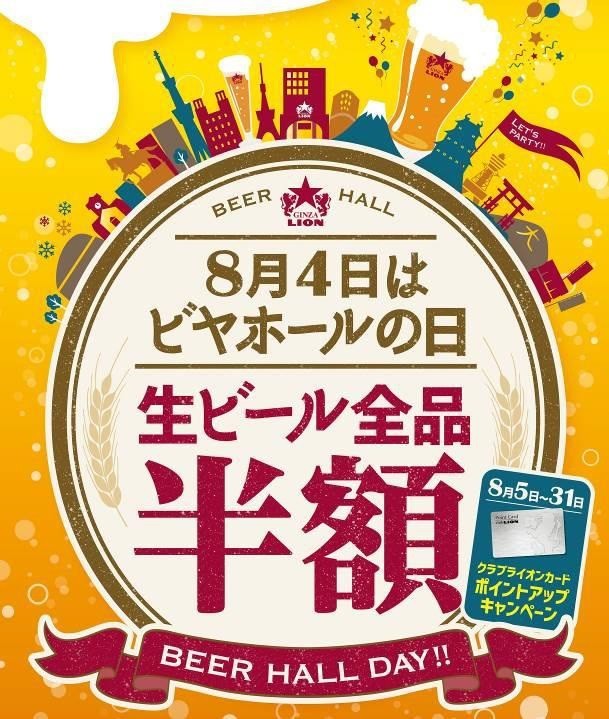 8月4日はビヤホールの日 サッポロライオン、YEBISU BARで生ビール半額!