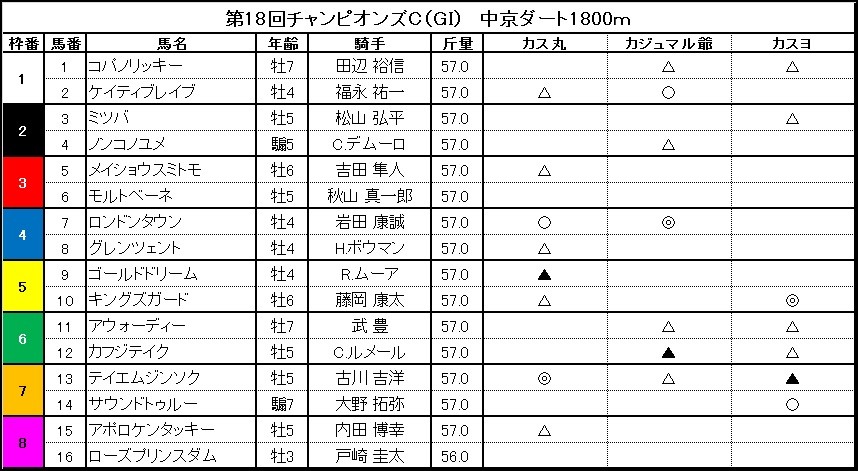 ■チャンピオンズカップ 「カス丸の競馬GⅠ大予想」 優勝候補10頭の大混戦を斬るのはコレ