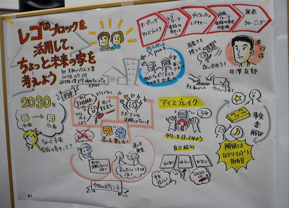 会議の内容を絵に描く「グラフィックファシリテーション」も取り入れられた。最後にこの絵をもとにワークショップを振り返った