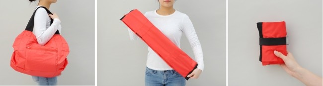 一瞬で帯状になり手早く折りたためる 新発想のバッグ2種