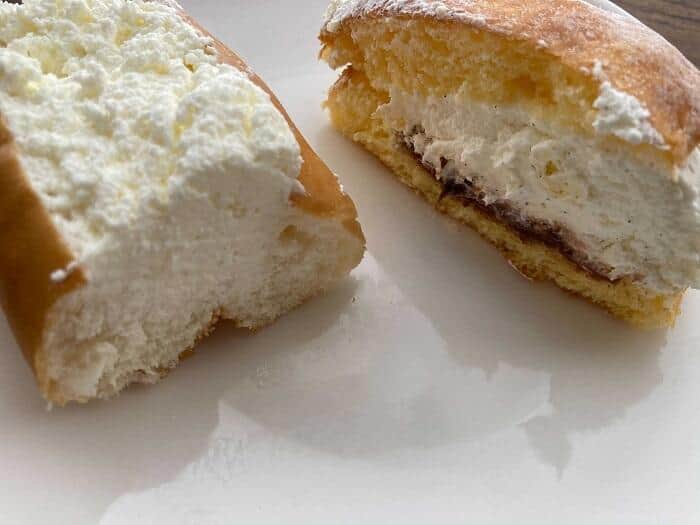 ローソンの「マリトッツォ」と「おやつコッペ」(上から)