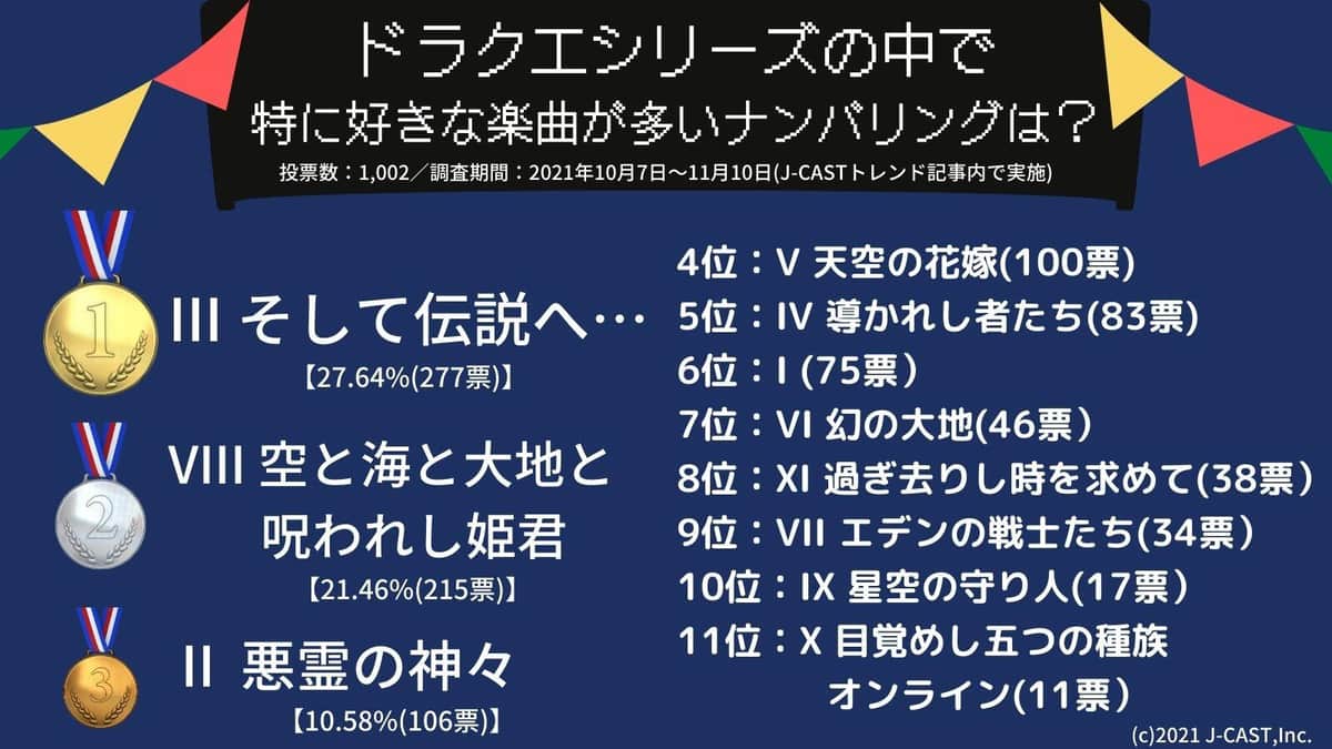 「ドラクエ」好きな楽曲が多い作品は IV、V、VIがトップ3圏外の波乱