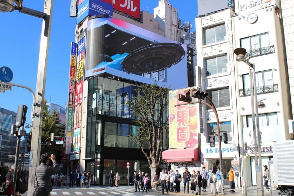 ネコではなく、UFOが飛び出している UFOの真下に「百果園」