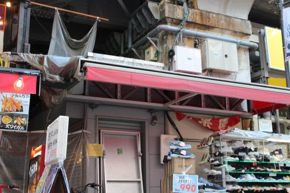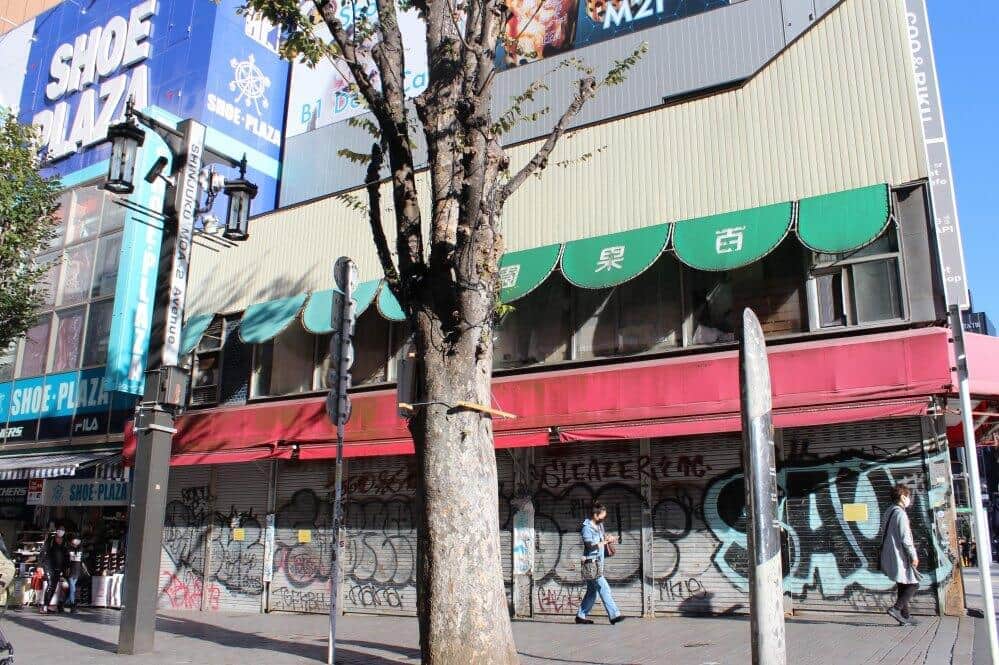 しまっているシャッターには落書きが