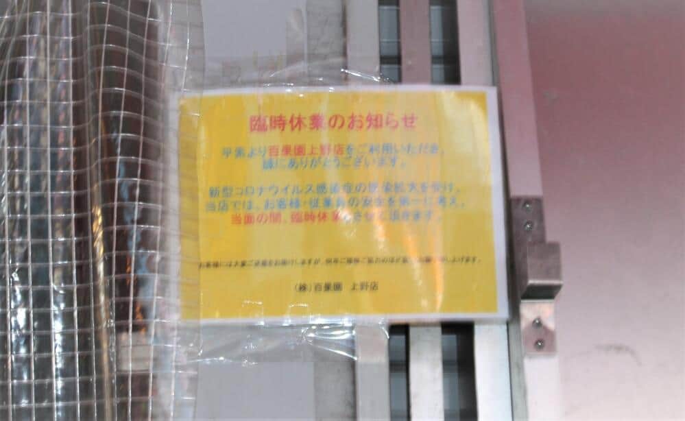 色あせてしまった「臨時休業のお知らせ」