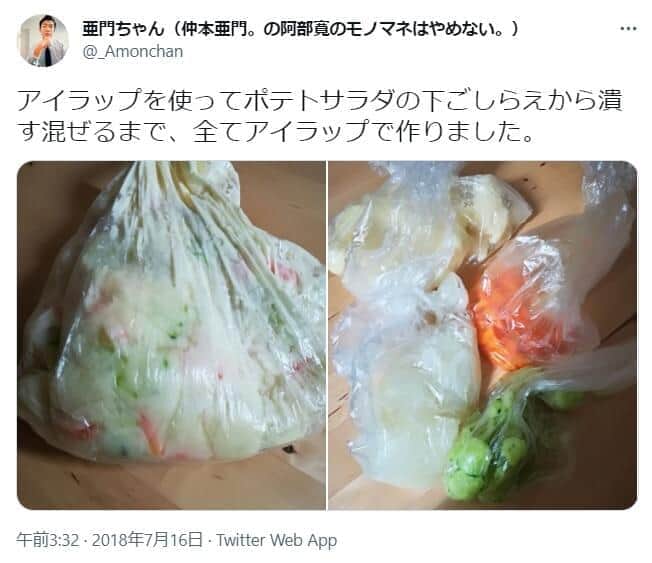 「ポテサラ作り」アイラップで時短 イモ入れてレンチン、そのまま味付けまで