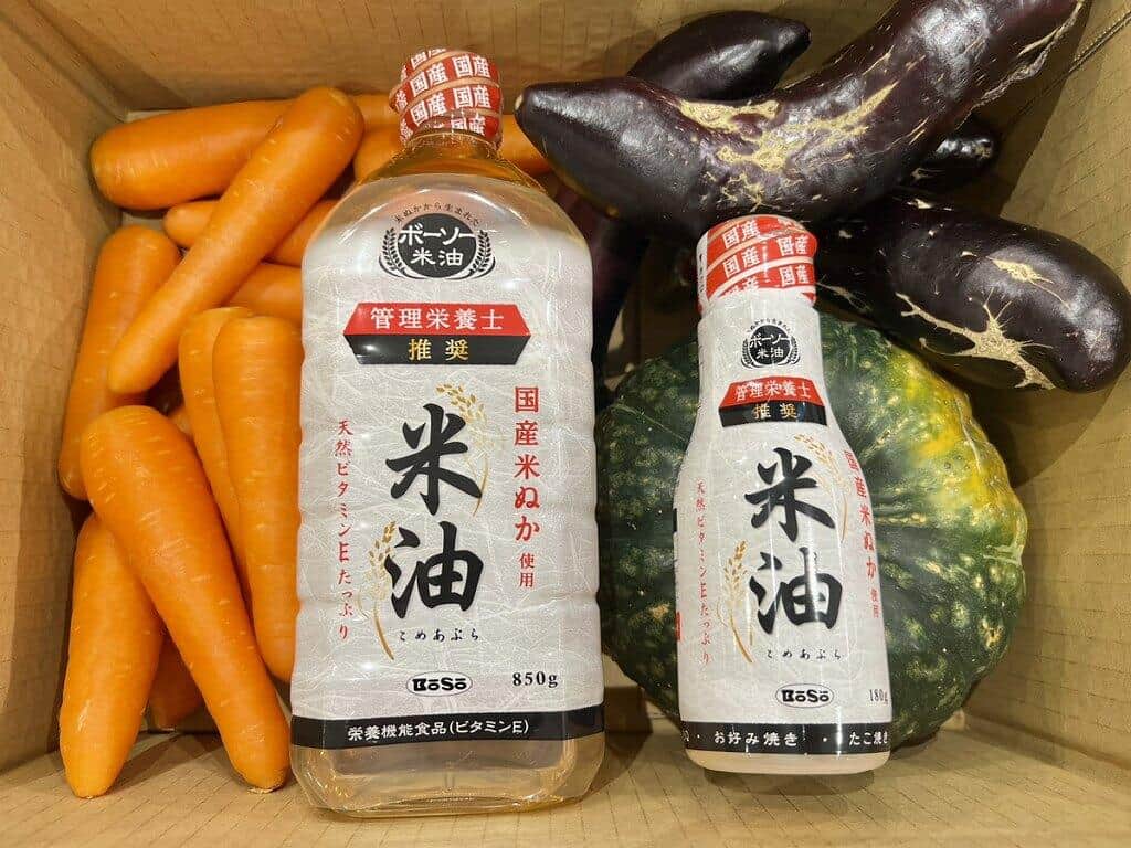 カボチャ、ニンジン、ナス約4kgと「ボーソー米油」850g・180gのセット