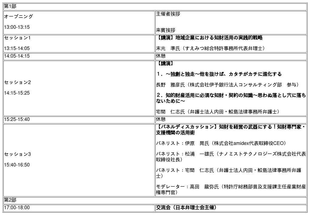 ■共催 :中小企業庁、(独)工業所有権情報・研修館(INPIT)、日本弁理士会、愛媛新聞社