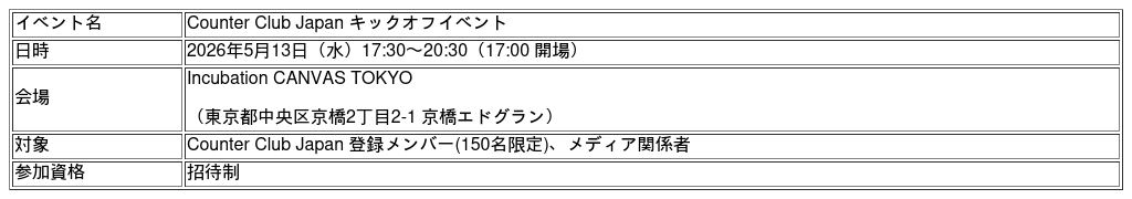 ■Counter Club Japan キックオフイベント概要