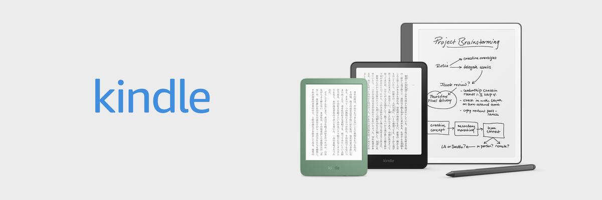 | Kindle | Paperwhite | Paperwhite シグニチャー エディション | Amazon Kindle Colorsoft | Amazon Kindle Colorsoft シグニチャーエディション | Kindle Scribe Notebook Design | |