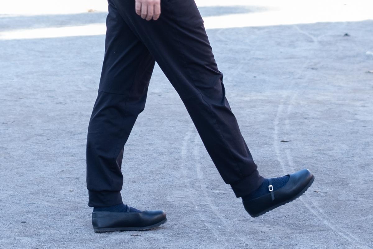 つま先側がかかとより厚底な分、いつもより足を大きく高く踏み出さないと前に進めません。