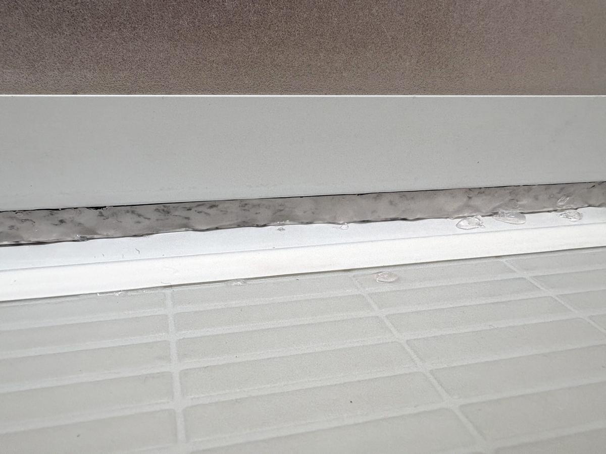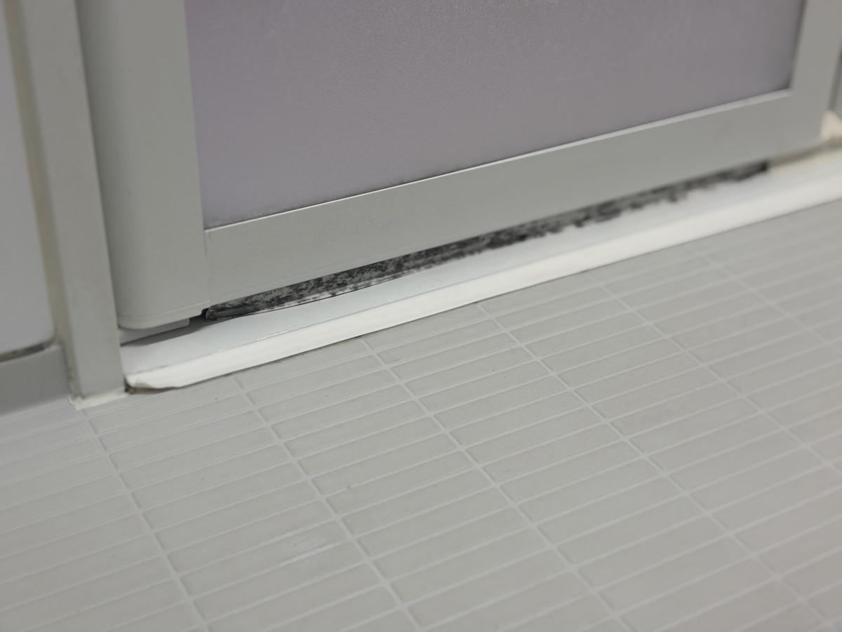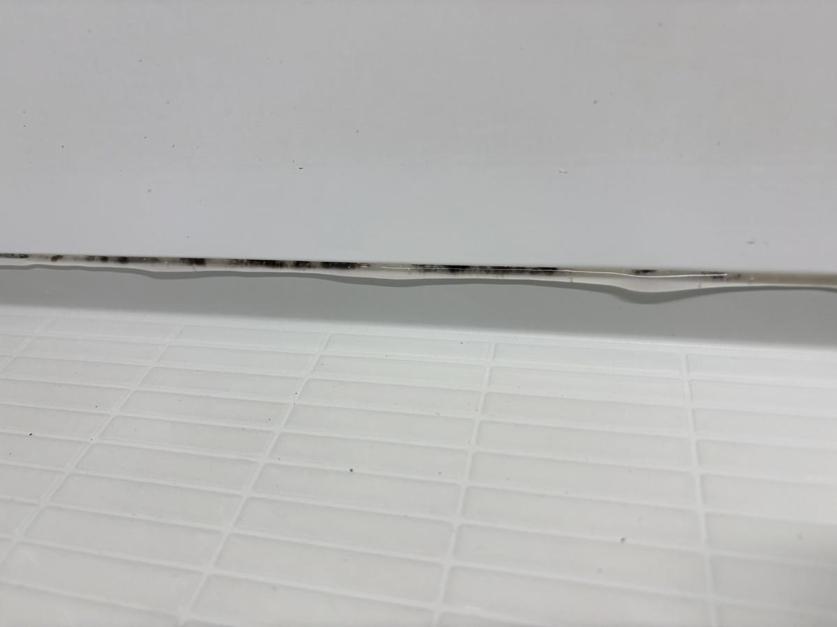 住み始めた頃は真っ白だったバスルームですが、壁の境目の目地はこの通り。
